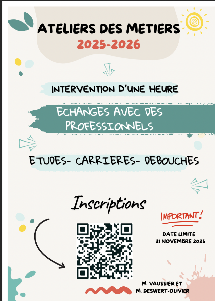 veuillez trouver en un clic les informations nécessaires pour vous inscrire aux ateliers des métiers 2025-2026.